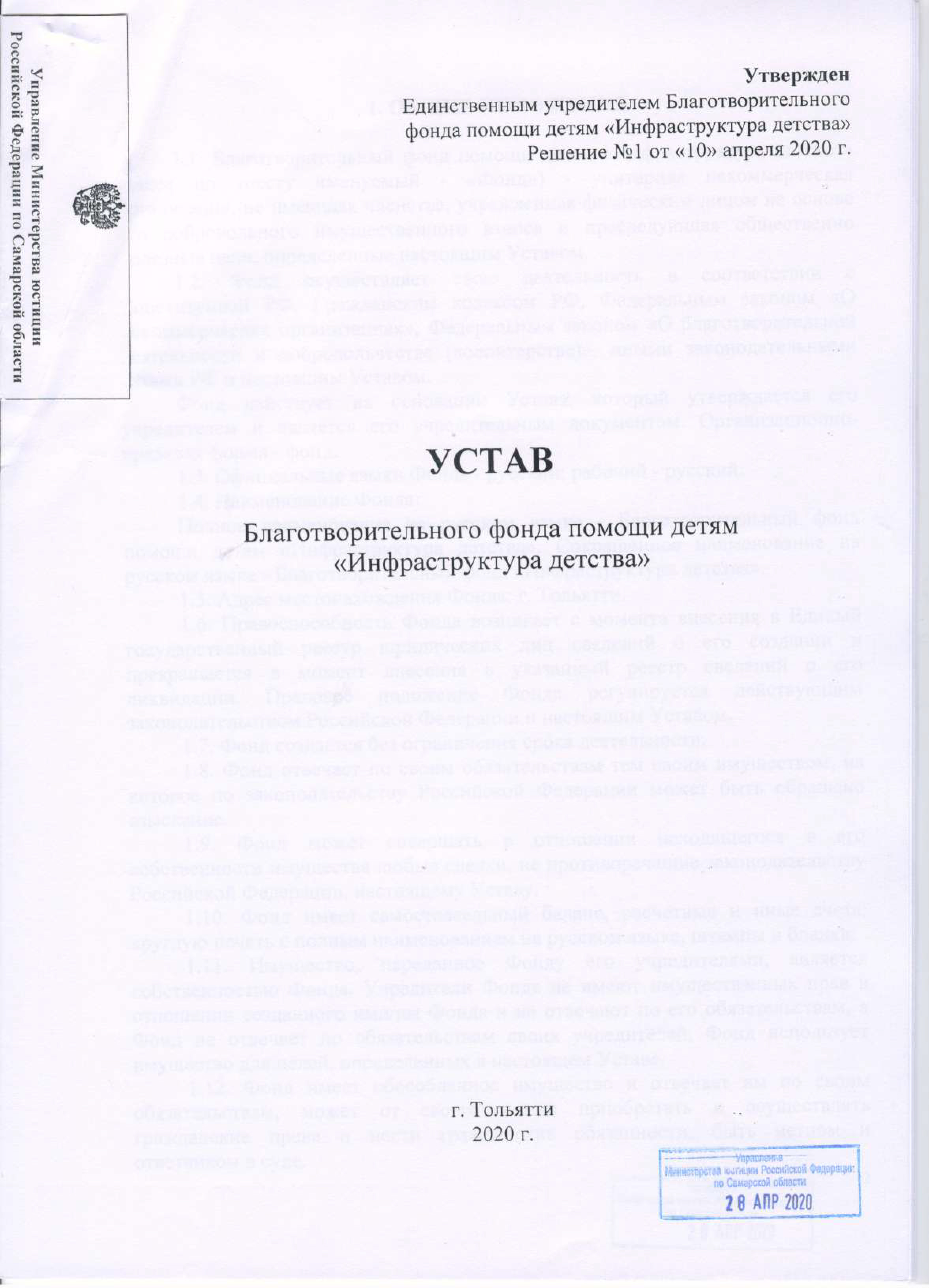 «Инфраструктура детства» Благотворительный фонд помощи детям